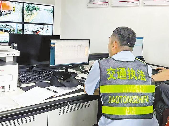 湖北省交通运输行政执法人员利用“湖北省治超联网管理信息系统”开展“无感式”检查。