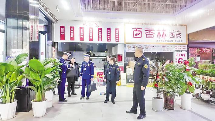 襄阳市保康县市场监管局和消防救援大队的联合执法队伍向企业现场负责人出示“保企码”。
